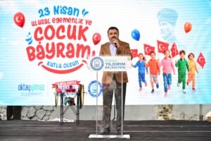 Çocukları bu mutlu günde yalnız bırakmayan Yıldırım Belediye Başkanı Oktay Yılmaz, etkinlik alanını gezerek miniklerle ve aileleriyle bir araya geldi. Bayram coşkusuna ortak olan Başkan Yılmaz, “23 Nisan, milletimizin bağımsızlık meşalesini yaktığı, egemenliğin kayıtsız şartsız millete geçtiği müstesna bir gündür. Gazi Mustafa Kemal Atatürk’ün bu anlamlı günü çocuklara armağan etmesi, onlara duyulan güvenin ve sevginin en somut göstergesidir. Yıldırım Belediyesi olarak bizler de geleceğimizin teminatı olan evlatlarımızın yüzündeki bir tebessümü her şeyin üstünde tutuyoruz. Çocuklarımız bizim en büyük hazinemiz, yarınlarımızın mimarlarıdır. Onların nitelikli, donanımlı ve mutlu bireyler olarak yetişmesi için tüm imkanlarımızı seferber ediyoruz. Bugün burada gözlerindeki o parıltıyı görmek bizler için en büyük motivasyon kaynağı. Tüm çocuklarımızın ve milletimizin 23 Nisan Ulusal Egemenlik ve Çocuk Bayramı’nı en içten dileklerimle kutluyorum” ifadelerini kullandı.