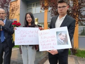 Bursa Osmangazi Şehit Erol Olçok Turizm Mesleki ve Teknik Anadolu Lisesi’ öğrencileri Şanlıurfa ve Kahramanmaraş’ta yaşanan okul baskınlarından sonra farkındalık oluşturmak adına anlamlı bir etkinliğe imza attı. Sabah okula gelen öğretmenlerini çiçeklerle ve pankartlarla karşıladı. Öğrenciler, ‘öğretmene silah değil çiçek uzatılır’ ve ‘Vatanı korumak çocukları korumaktan başlar’ pankartlarıyla arkadaşlarını karışlayan öğrenciler, ayrıca tüm öğretmen ve öğrencilere karanfil dağıttılar. Öğrencilerinin bu duyarlılığının kendilerini çok duygulandırdığını ifade eden Şehit Erol Olçok Turizm Mesleki ve Teknik Anadolu Lisesi Müdür Yardımcısı Mehmet Niyazi Köse, “Eğitimci olarak bizler on iki günde meslek hayatlarının en zor dönemini yaşadık. Bu süreç öğrencilerimiz için çok daha zordu. Ancak onlar kendi zorluklarını unutarak arkadaşlarına ve bizlere büyük bir sürpriz yaptı. Kendileri küçük de olsa kalplerinin ne kadar büyük olduğunu bize gösterdiler. Bizim tahayyül ettiğimiz Türk Gençliği işte tam olarak budur. Öğrencilerimiz kutluyor ve onların öğretmenleri olmaktan gurur duyuyoruz” dedi.