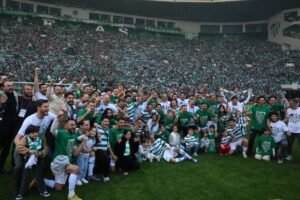 Sezon boyunca gösterdiği performansla takdir toplayarak, kente gurur yaşatan Bursaspor, Nesine 2. Lig’de sahasında konuk ettiği Somaspor’u 5-1’lik farklı bir skor ile yenerek, bitime bir hafta kala şampiyonluğunu ilan etti. Trendyol 1. Lig’e yükselen yeşil beyazlı ekibin, şampiyonluk heyecanı Osmangazi’de yaşanırken, Başkan Erkan Aydın’ın konuğu olan Osmangazili çocuklar Atatürk Spor Kompleksi Matlı Stadyumu’nda, Osmangazi Meydanı’nda kurulan dev ekran başında da yeşil beyazlı taraftarlar, şampiyonluğun coşkusuna ortak oldu. Kent yeşil beyaz rengine bürünürken, Osmangazili vatandaşlar da saatler süren kutlamalar kapsamında ellerinde atkılar ve bayraklarla Bursaspor’un şampiyonluğunun keyfini doyasıya çıkardı.