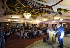 Saadet Partisi Genel Başkanı Mahmut Arıkan, konuşmasının devamında Türkiye’nin dış politikada dikkatli olması gerektiğini belirterek bölgedeki gelişmelere ilişkin uyarılarda bulundu. Arıkan, Türkiye’nin emperyalist güçlerin planlarının parçası olmaması gerektiğini vurguladı.